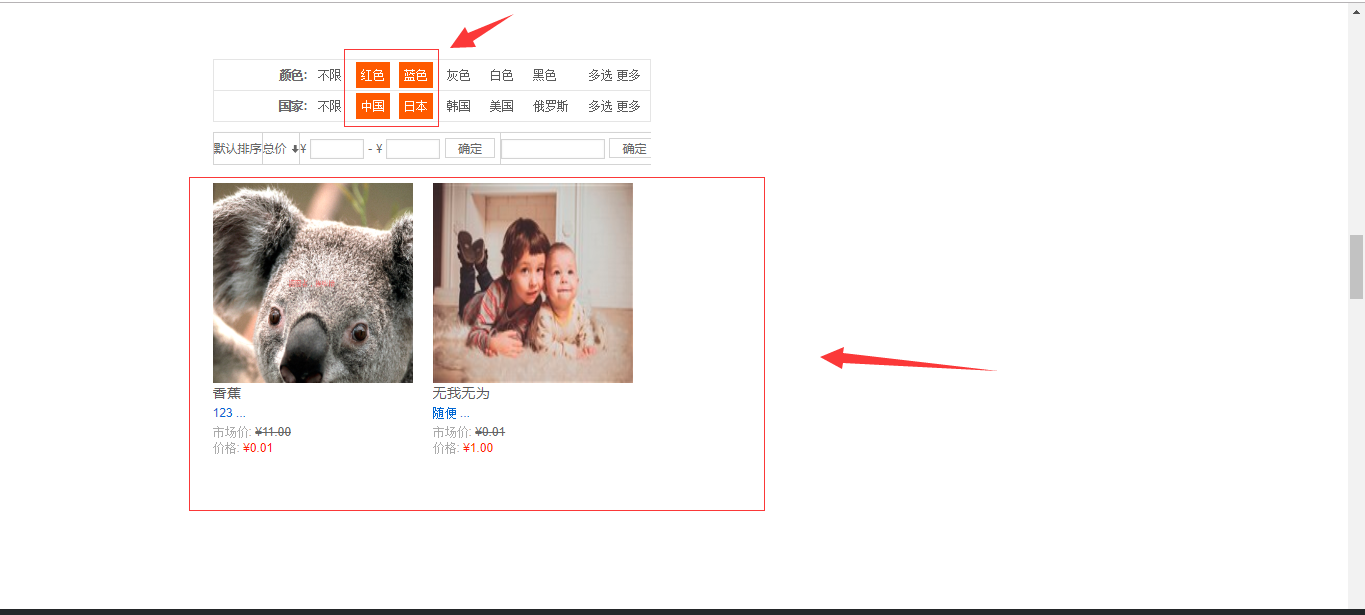 如果需要点击分类出现对应的属性(需要通过超链接  选择产品列表页)如下图